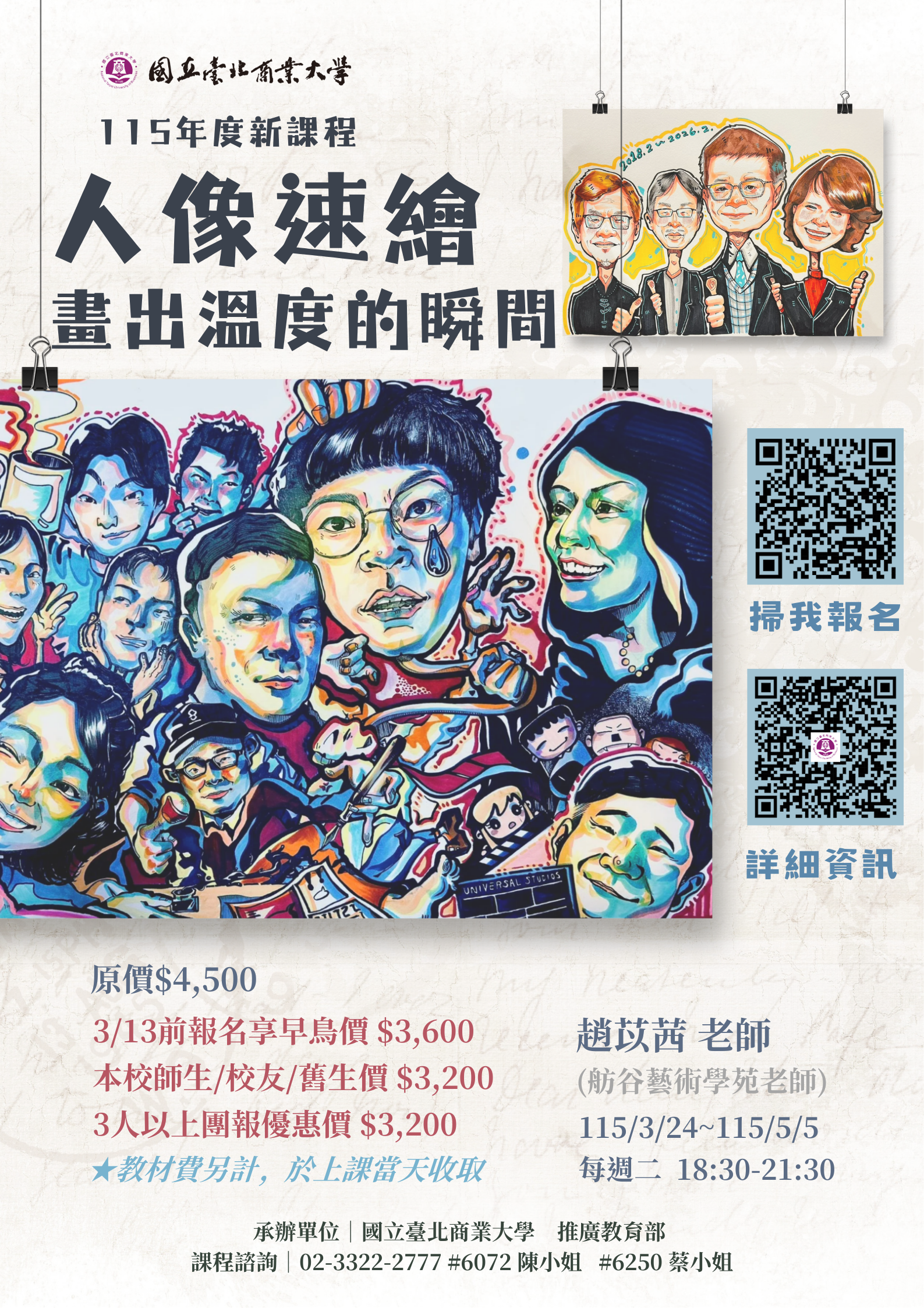 【台北校區】115.3.24(二)開課!《人像速繪入門班|畫出溫度的瞬間》★熱烈招生中~歡迎報名!★