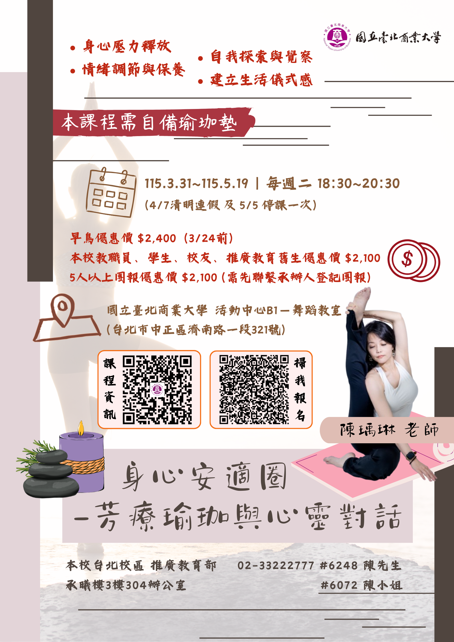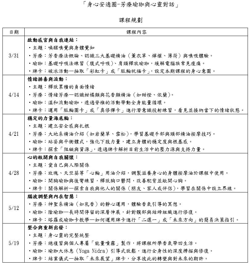 【台北校區】115年度「身心安適圈-芳療瑜珈與心靈對話」115.03.31(二)開課~熱烈招生中! 歡迎報名!