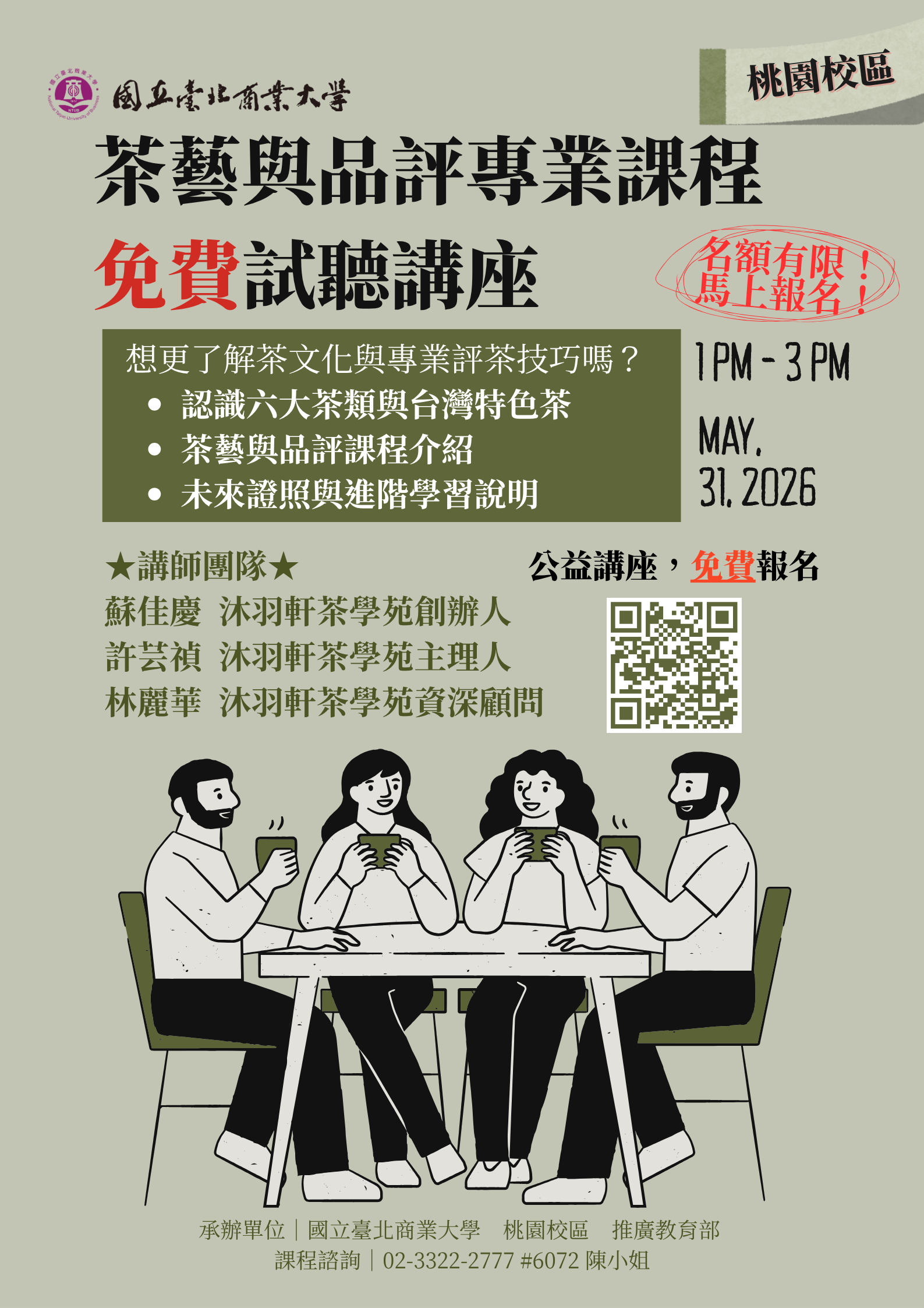 【推廣教育部】115年度《茶藝與品評專業課程》115.5.31(週日)★免費試聽課程~歡迎報名★