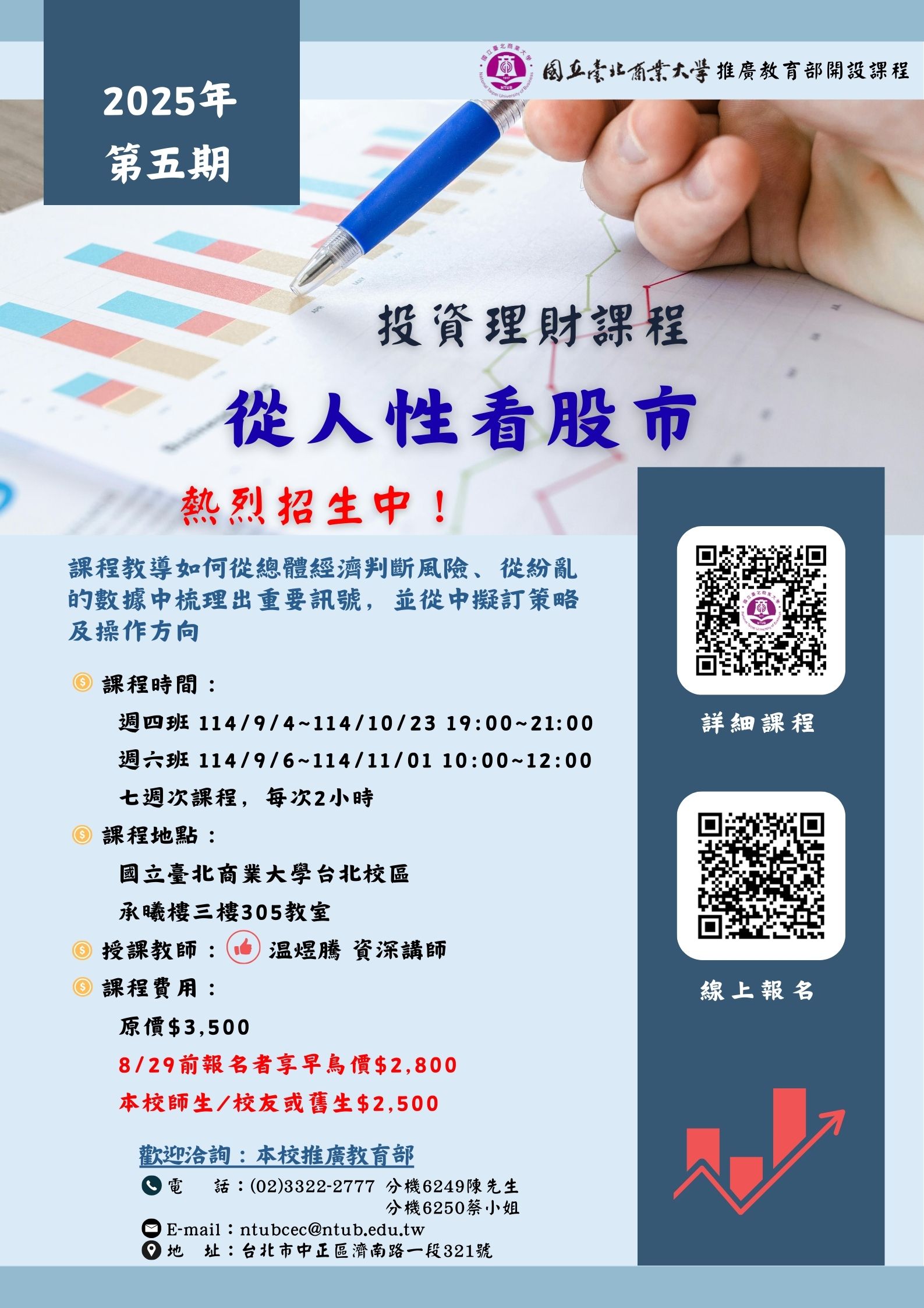 【台北校區】投資理財課程「從人性看股市(週四班 / 週六班)」已開班~截止報名!