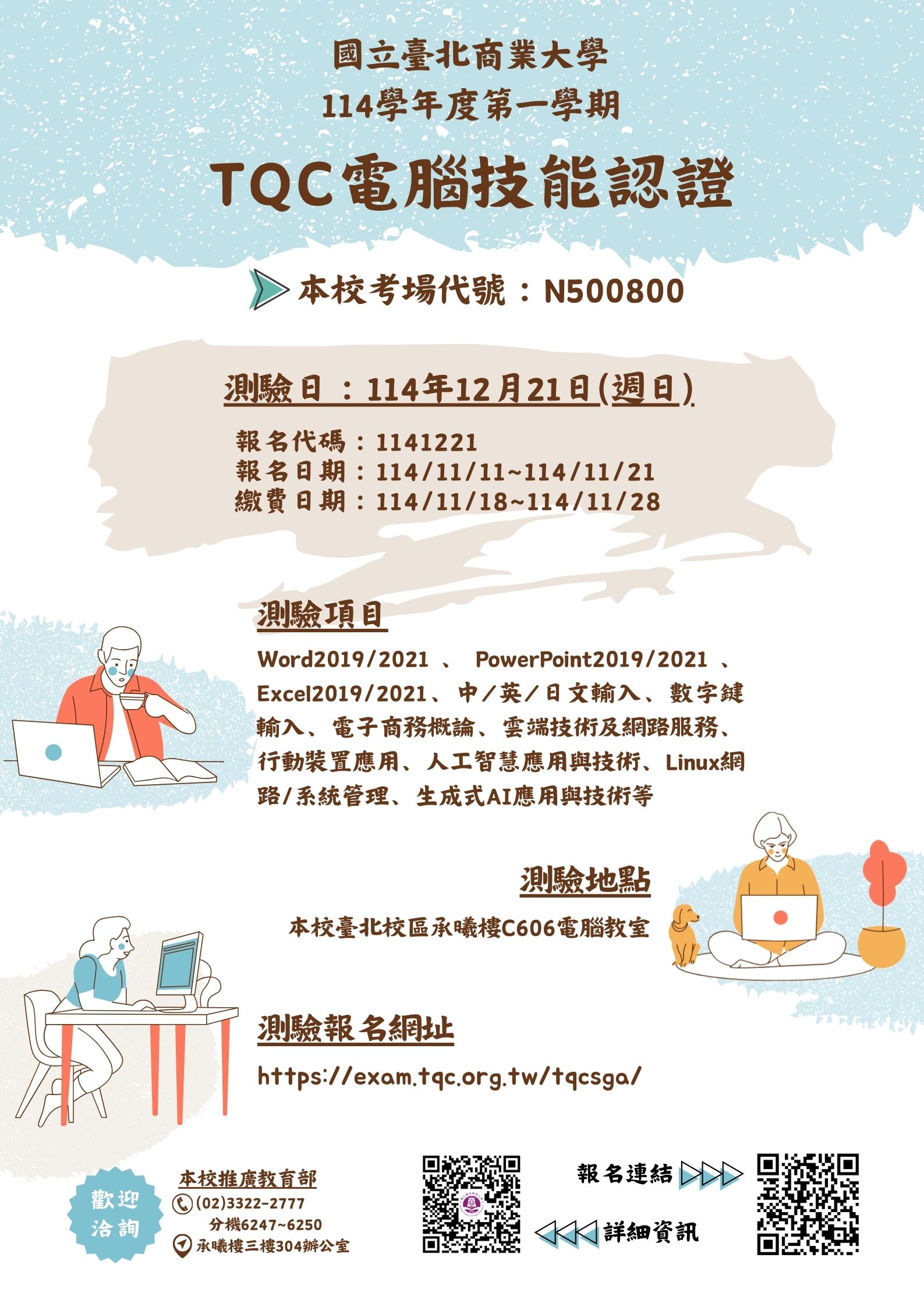 【證照考試】114學年度第1學期TQC電腦技能測驗-考試時間公告