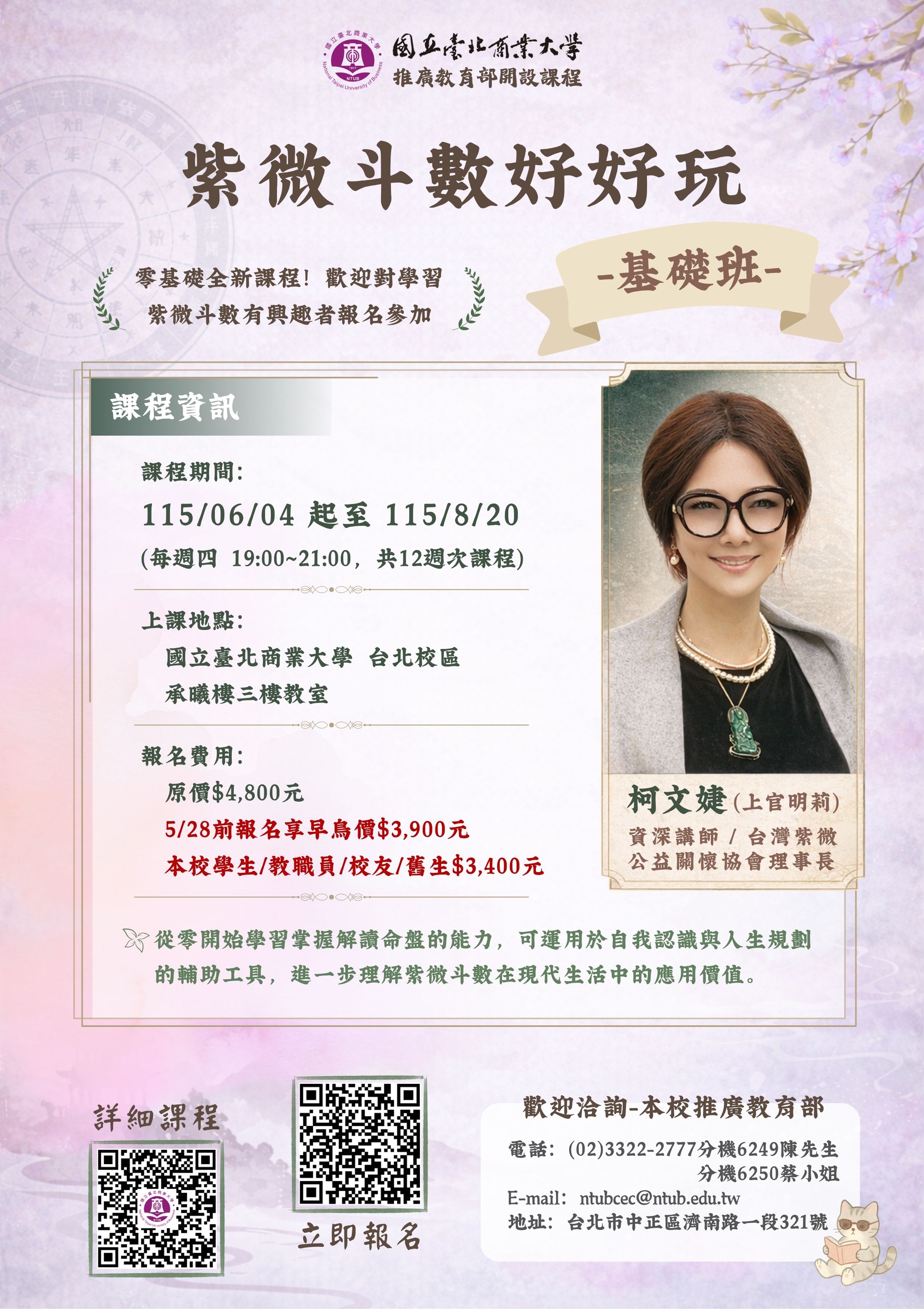 【台北校區】2026年度零基礎入門「紫微斗數好好玩-基礎班(柯文婕教師)」115.06.04(週四)開班!熱烈招生中~歡迎報名!