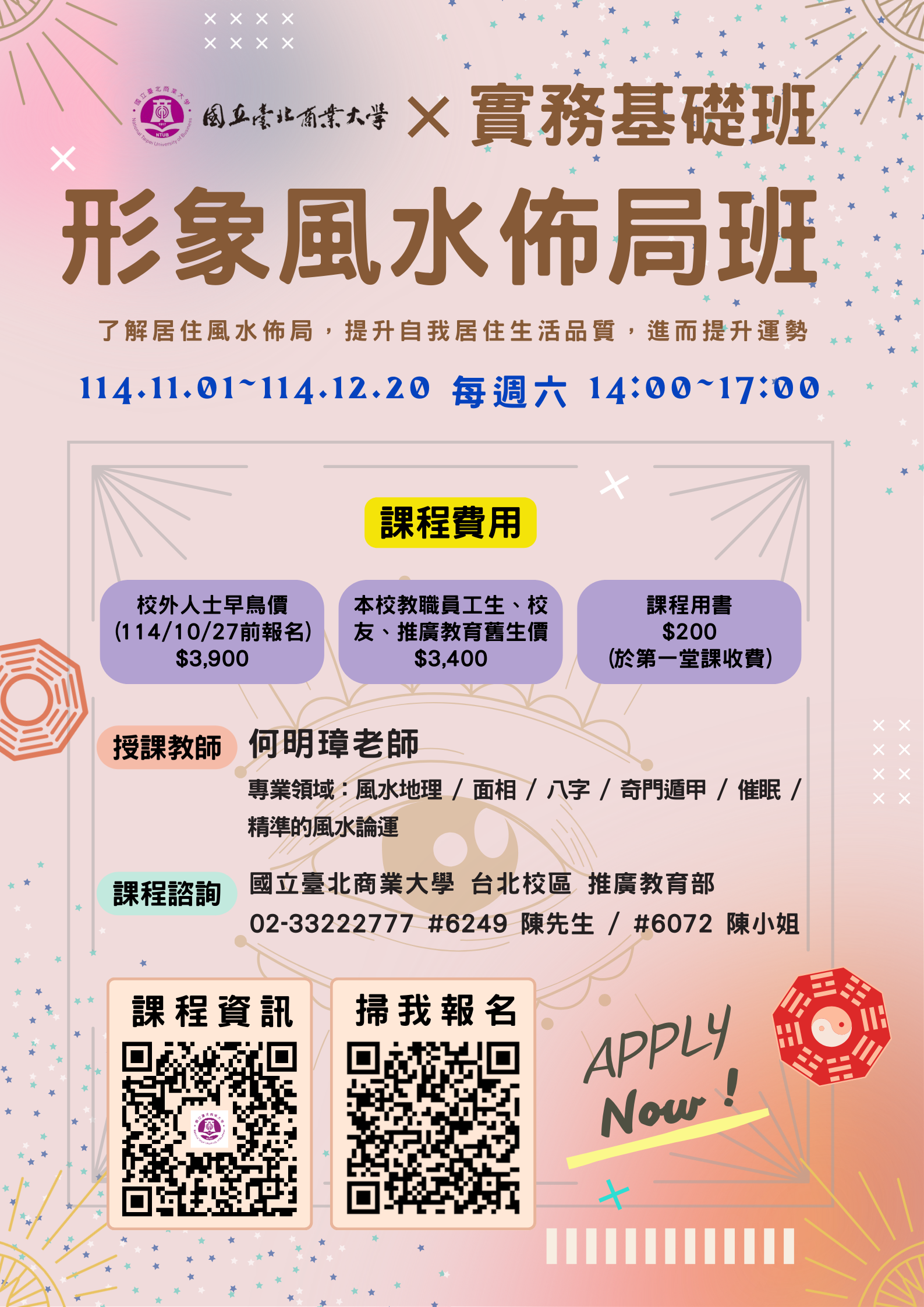 【台北校區】《確定開班!!~歡迎報名!》形象風水佈局班 x 實務基礎班 114.11.01(六)開課