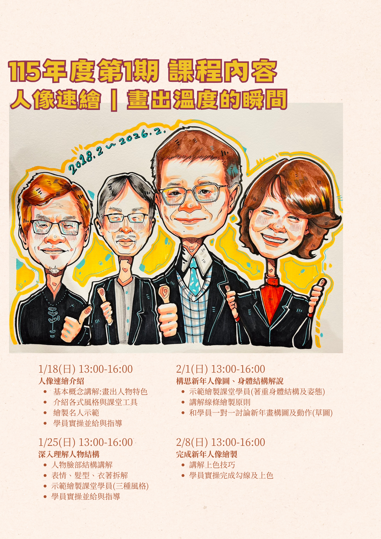 【桃園校區】115年度第1期《人像速繪入門班|畫出溫度的瞬間》115.1.18(日)開課!★熱烈招生中~歡迎報名!★