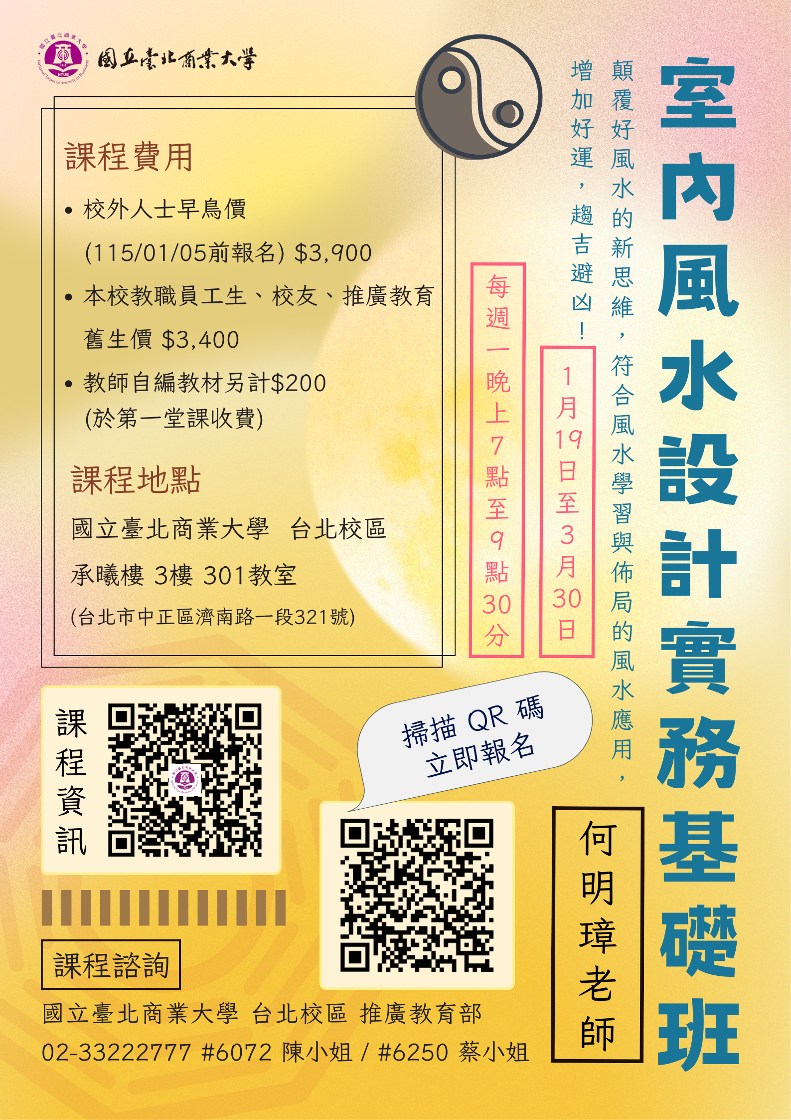 【台北校區~確定開班】室內風水設計實務基礎班 115.01.19(一)開課~歡迎報名!!