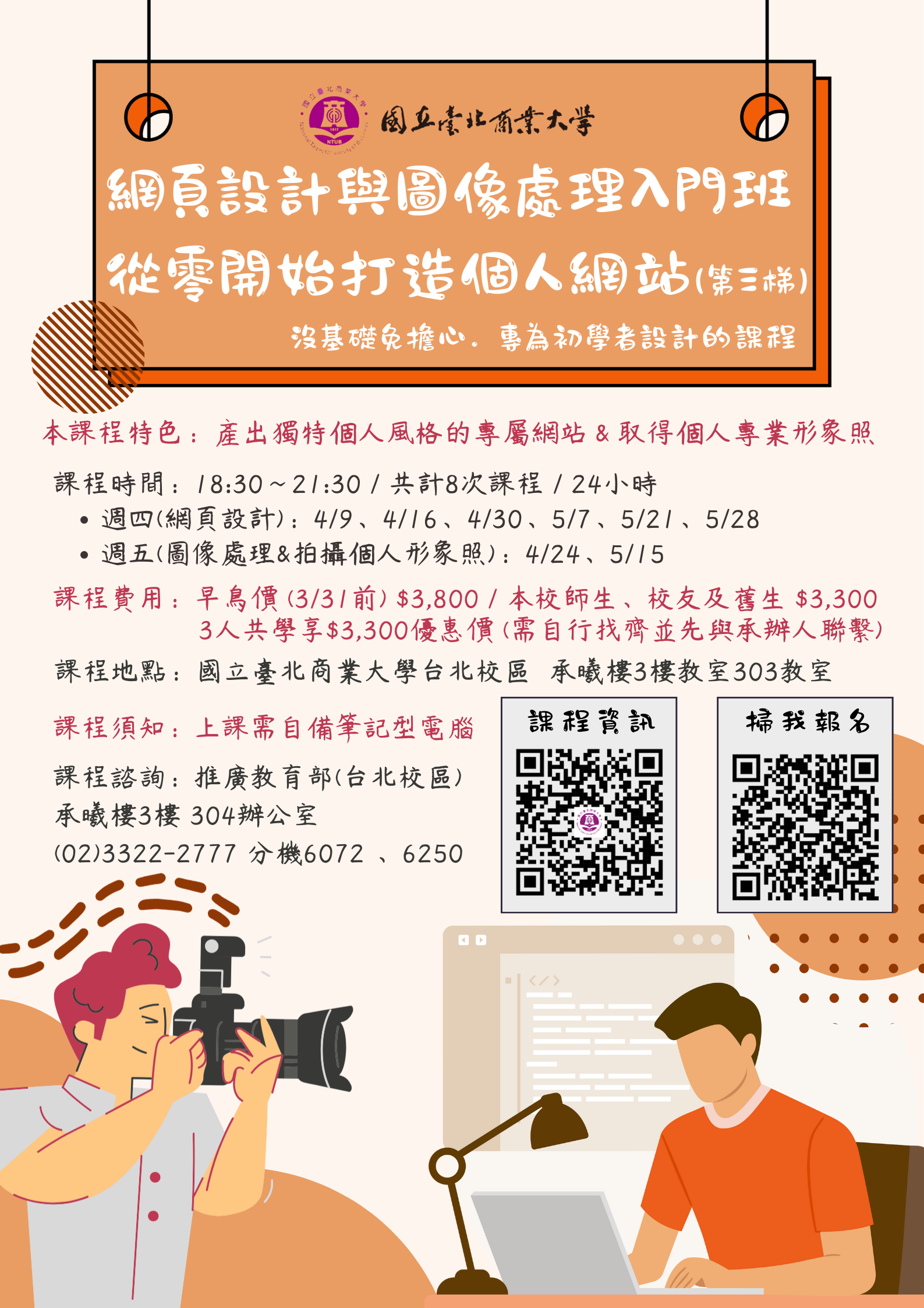 週五(圖像處理&拍攝個人形象照):4/24 5/15 (電腦不一定要帶)18:30~21:30