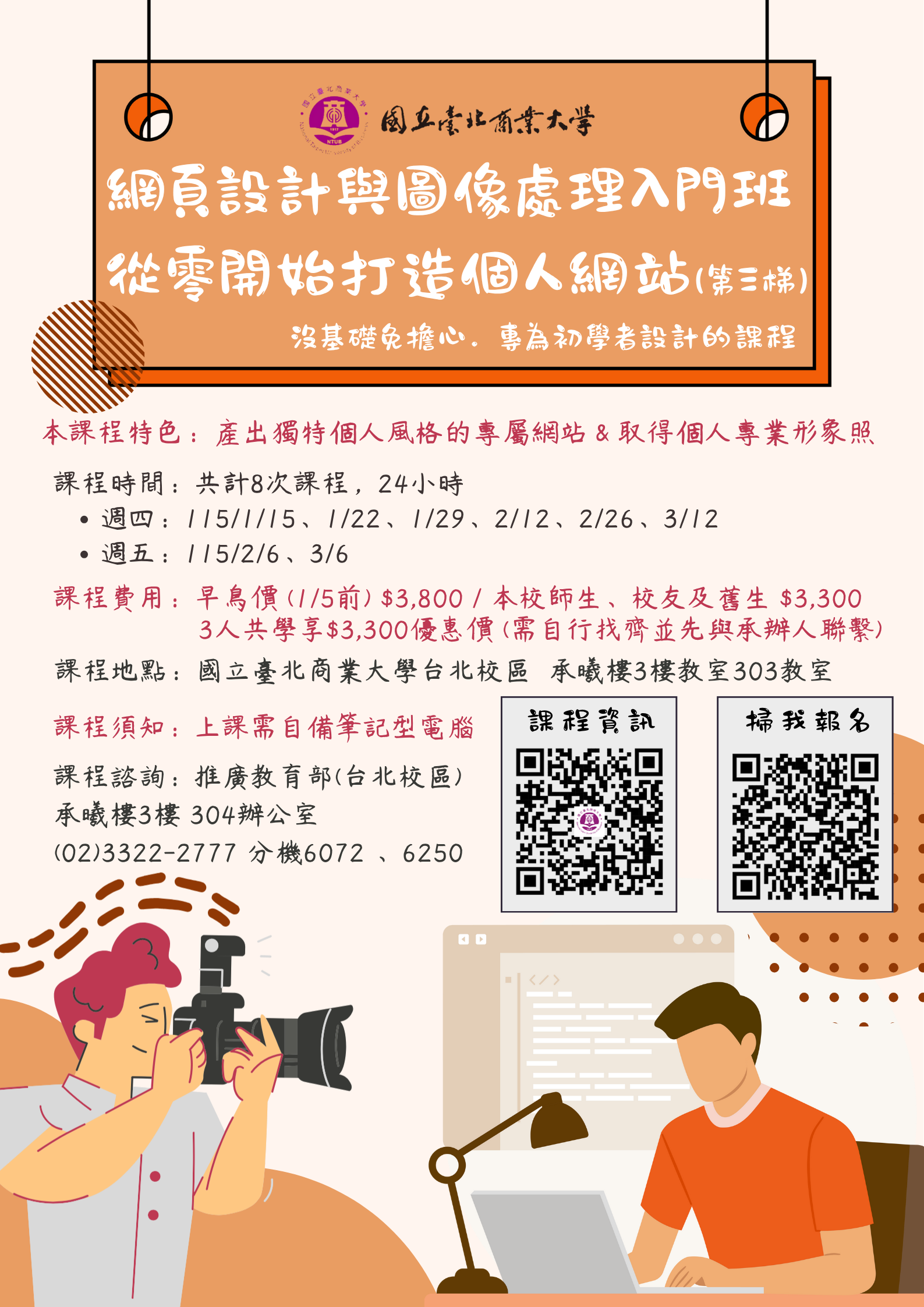 【台北校區】2026年1月開課~網頁設計與圖像處理入門班:從零開始打造個人網站(第三梯)~歡迎報名