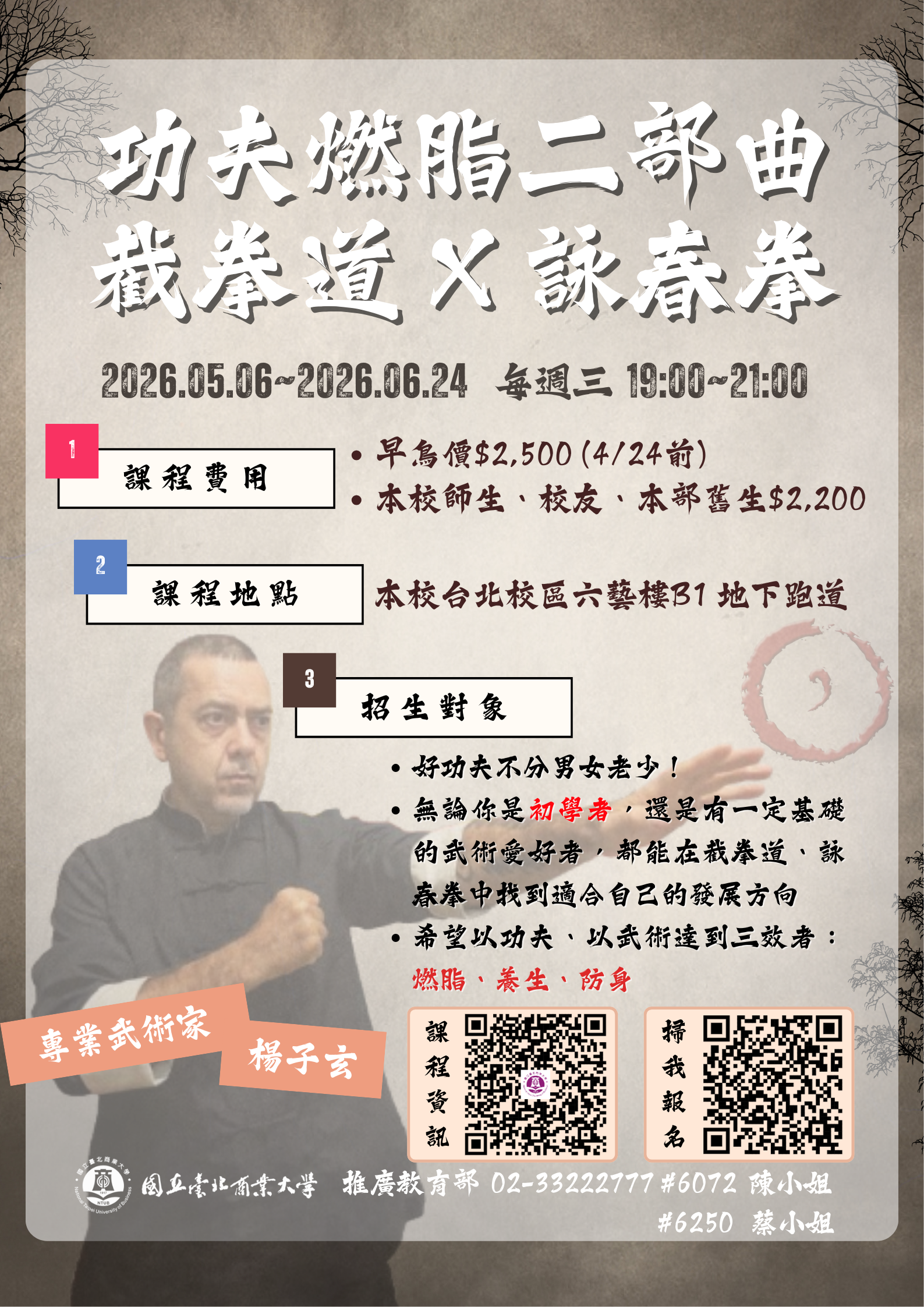 【台北校區】115.05.06 (三)開課~8週→功夫燃脂二部曲:截拳道 x 詠春拳~熱烈招生中!!