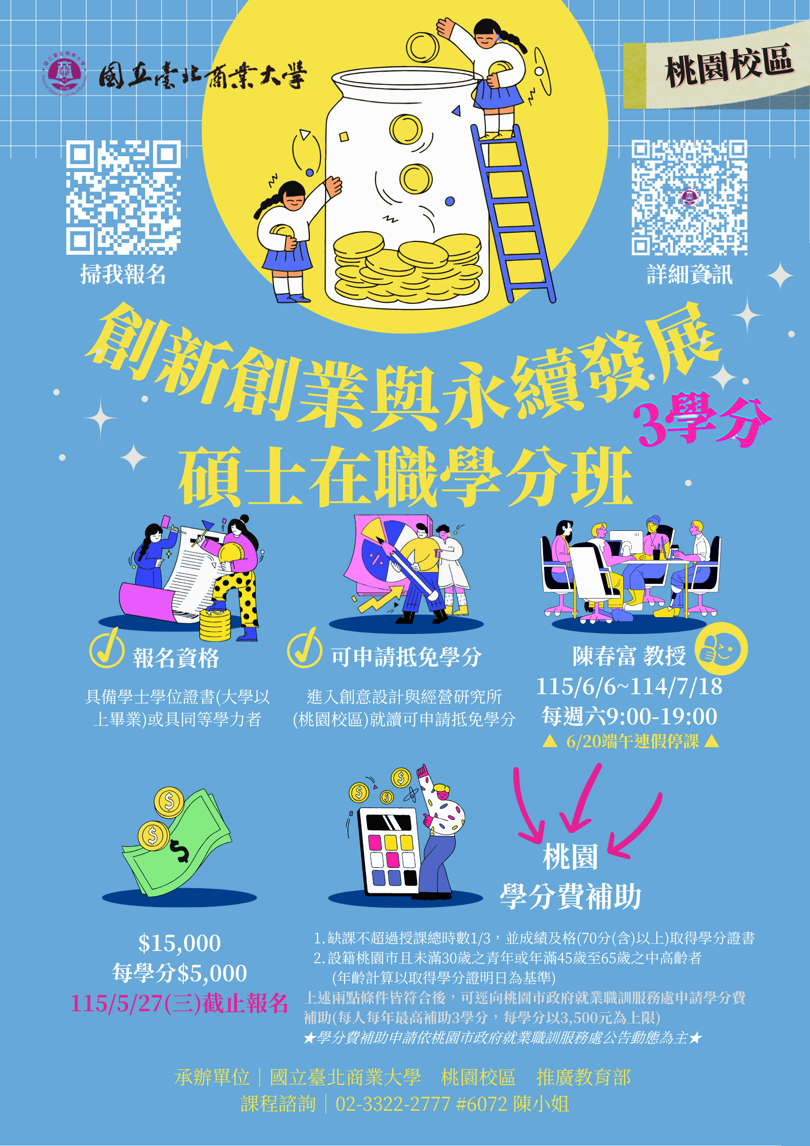 【桃園校區】115年度《創新創業與永續發展碩士在職學分班》115.6.6(六)開課!★熱烈招生中~歡迎報名!★